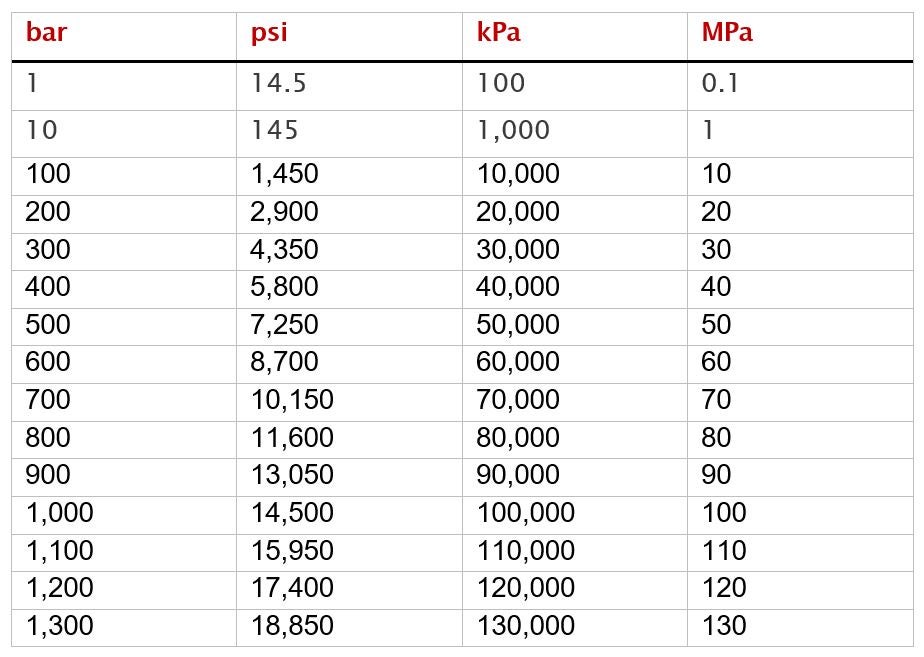Die Schlauchkonstruktion muss dem Druck im System auf jeden Fall standhalten. Deshalb müssen Sie einen Schlauch mit einem maximalen Betriebsdruck auswählen, der dem maximalen Druck des Hydrauliksystems entspricht oder darüber liegt. Hydraulikschläuche sind oft mit einem bar-, MPa- oder psi-Wert gekennzeichnet, um den zulässigen Betriebsdruck anzuzeigen.