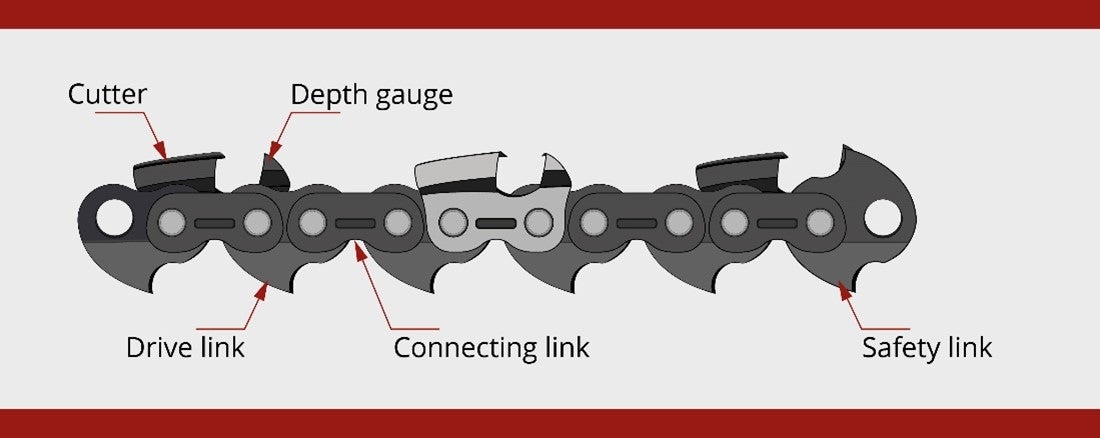 Cette longueur est exprimée par le nombre de maillons d’entraînement. Le nombre de maillons d’entraînement nécessaires dépend de la longueur de la chaîne. Sur certaines marques de tronçonneuse, le nombre de maillons requis est indiqué sur le guide-chaîne. Alors regardez ça de plus près.