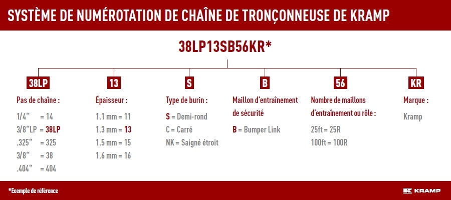 Utilisez le graphique ci-dessous comme fil conducteur pour trouver la bonne chaîne pour votre tronçonneuse :