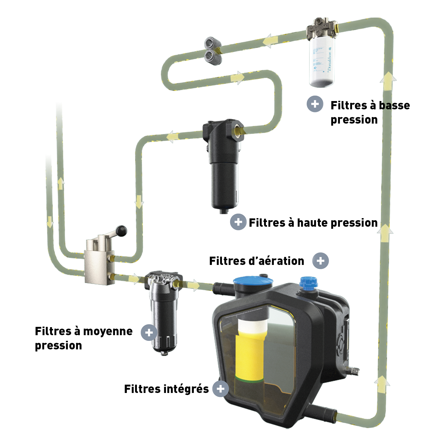 Quels filtres sont intégrés dans votre système hydraulique ?