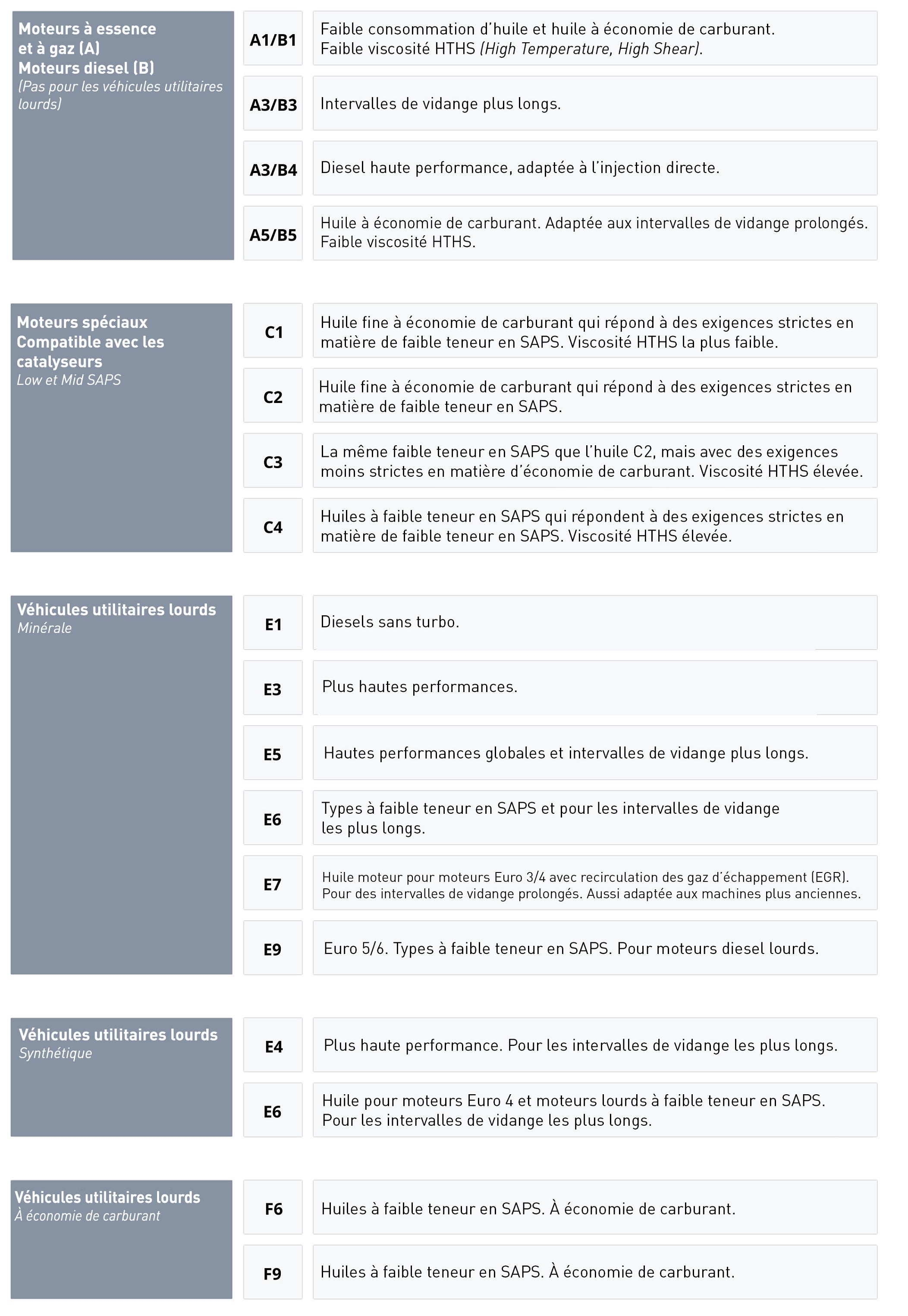La spécification ACEALa spécification ACEA n’est toutefois qu’une base. D’autres normes et spécifications viennent s’y ajouter, notamment celles du constructeur automobile.