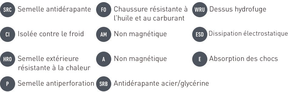 Avec les normes supplémentaires, vous pouvez adapter à la perfection vos chaussures de sécurité à votre environnement de travail.