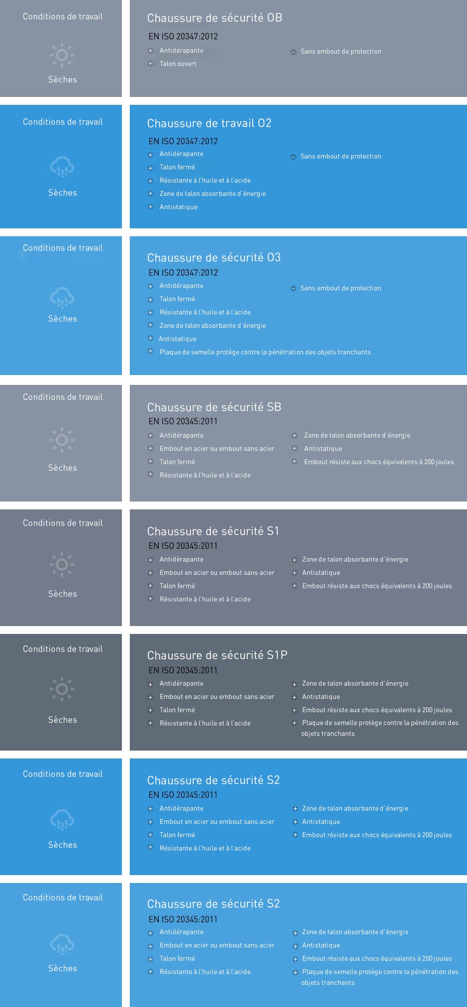 Que signifient les normes de sécurité pour mes chaussures de travail ?