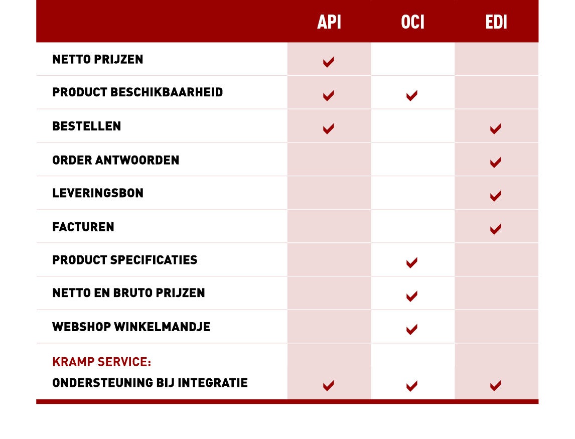 Wanneer jouw DMS-provider al connectie mogelijkheden heeft met Kramp, is een verbinding relatief makkelijk op te zetten. Wil je weten of jouw DMS-provider al een bestaande connectie heeft met Kramp? Vraag het aan een van onze Account Managers.