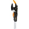 | Productomschrijving | Met de tuinsnijder kun je jong, fris groen en groeiend hout comfortabel snoeien. Door het rolkoordsysteem en het kettingmechanisme wordt er een enorme krachtbesparing gerealiseerd. Zijn bouw maakt het mogelijk om moeilijk bereikbare plekken te snoeien, zoals in boomtoppen of juist dicht bij de grond. De snoeikop is 230° draaibaar en in elke stand te fixeren. De totale snoeihoogte bedraagt ca. 3,5 meter. De messen zijn vervaardigd uit gehard roestvast staal, voorzien van een teflonlaag. Dit zorgt voor een lange levensduur. De snoeigiraffe is te combineren met een boomzaag en fruitplukker. | |