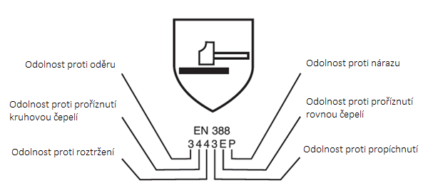 Norma ČSN EN 388:2016 zaručuje bezpečnost a kvalitu výrobků a služeb. Pracovní rukavice musí splňovat požadavky těchto norem a provádí se jejich zkoušky odolnosti proti oděru, proříznutí (2x), roztržení, propíchnutí a nárazu. Podle toho můžete určit, před jakým nebezpečím a do jaké míry vás rukavice ochrání.