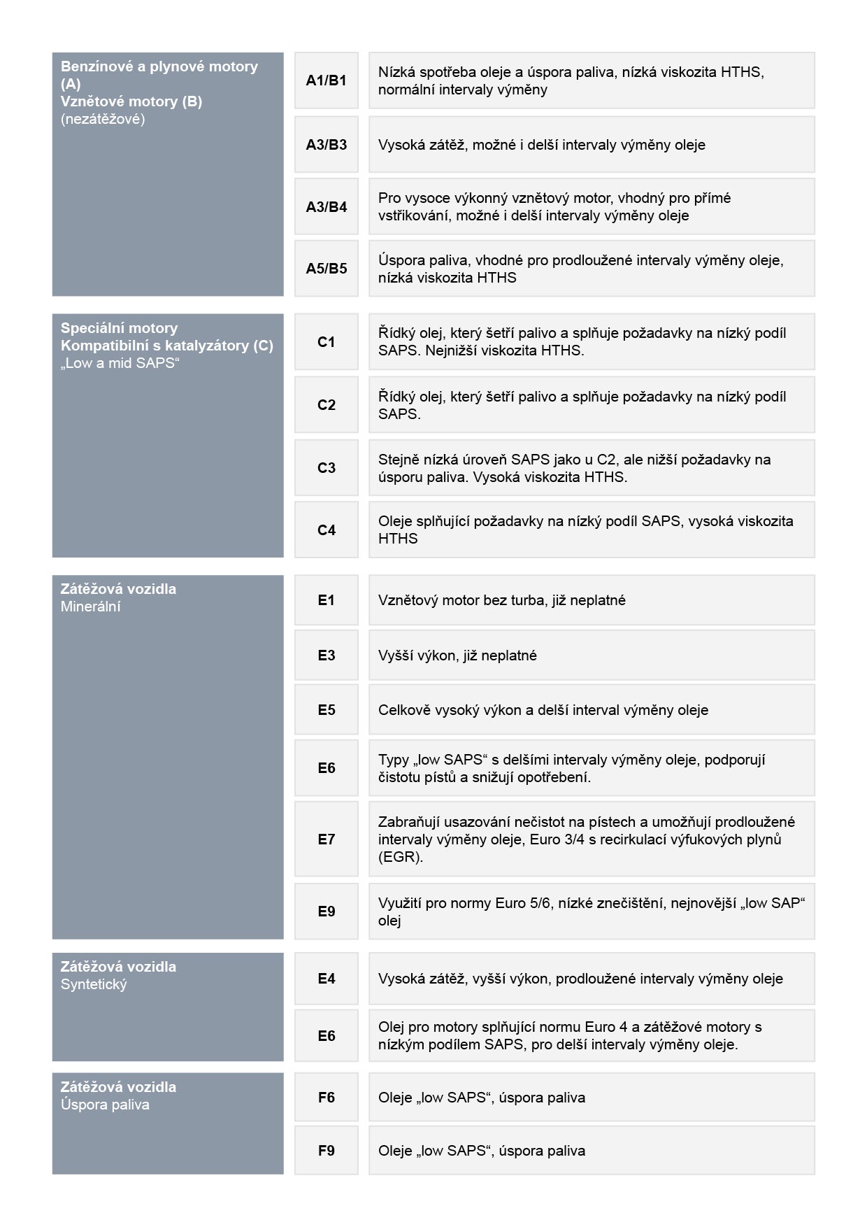 - Označení „C“ zahrnuje kategorie olejů pro vznětové motory
