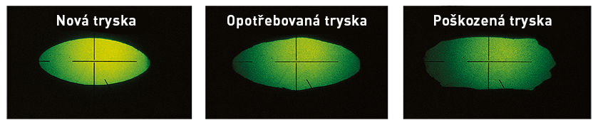 Zatímco při vizuální kontrole se opotřebení trysky nemusí podařit zaznamenat, lze ho spatřit pomocí optického komparátoru.Pravidelná údržba