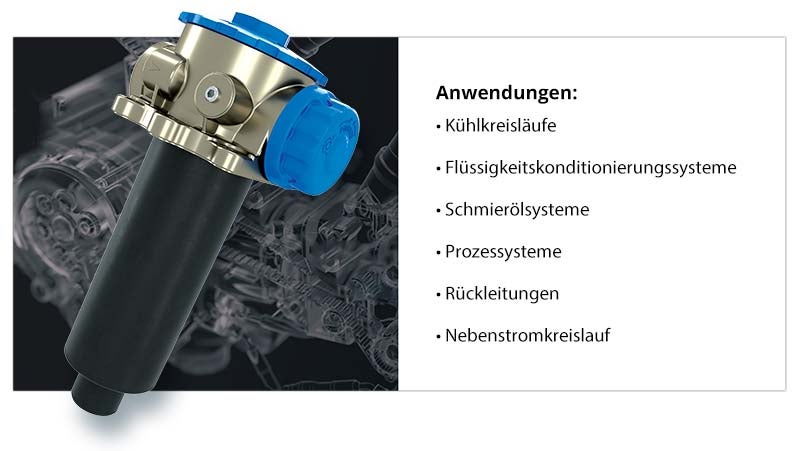 Diese sind in den meisten Hydrauliksystemen zu finden, in der Regel in Reihe auf dem Rückweg zum Tank/Behälter in Richtung Pumpe.