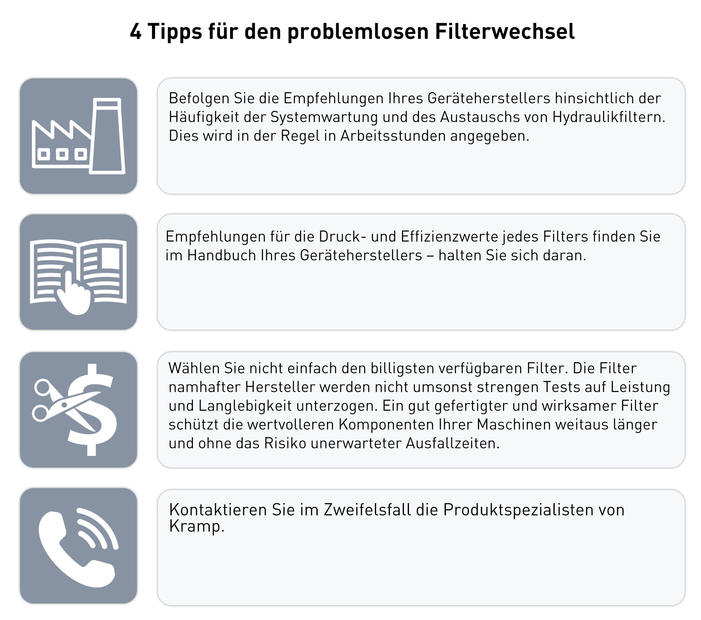 Der Hydraulikfilter-Hersteller Donaldson, dessen Produkte Sie im Kramp Webshop finden, hat unsere Spezialisten bei der Zusammenstellung eines schnellen und einfachen Leitfadens für Hydraulikfilter unterstützt.