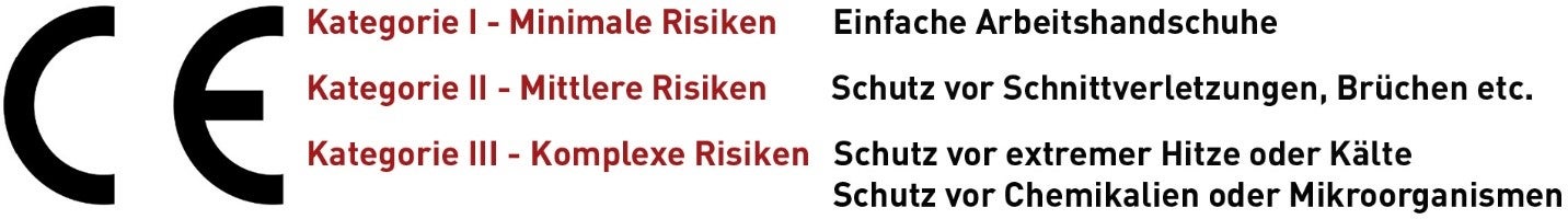 Schutzhandschuhe gehören zur Persönlichen Schutzausrüstung (PSA). Der Gesetzgeber schreibt vor, bei welcher Gefährdung welche Ausrüstung zu tragen ist und unterteilt sie in drei Kategorien:
