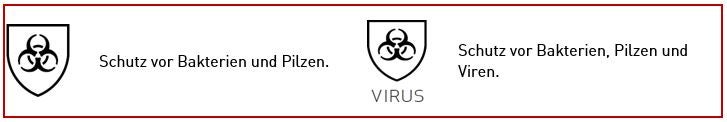 Handschuhe, die neben Bakterien und Pilzen auch noch gegen Viren schützen, sind durch das Wort „VIRUS“ unterhalb des Piktogramms gekennzeichnet.