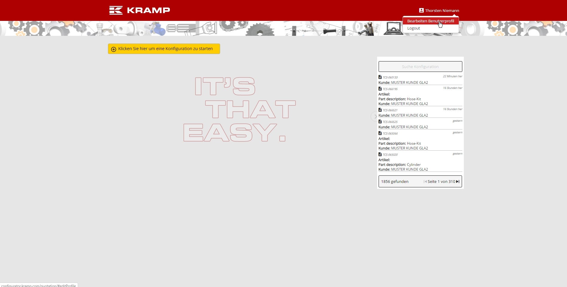 Der Kramp Produktkonfigurator mit optimiertem Layout und neuen Funktionen. Sie haben ab sofort die Möglichkeit, nur die Bruttopreise anzuzeigen. Das bedeutet, dass Sie das Produkt jetzt gemeinsam mit Ihrem Kunden konfigurieren können, ohne Informationen zu den Nettopreisen preiszugeben.