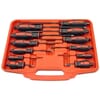 | Extra info | Satin black, chrome vanadium steel blades. Hardened and tempered tips. Polypropylene handles for exceptional grip.Slot size: 9.5x200mm, 8x150mm, 6x100mm, 5x75mm, 3.2x75mm, 6x38mm. Phillips size: 4x200mm, 3x150mm, 2x100mm, 1x75mm, 0x75mm, 2x38mm. |