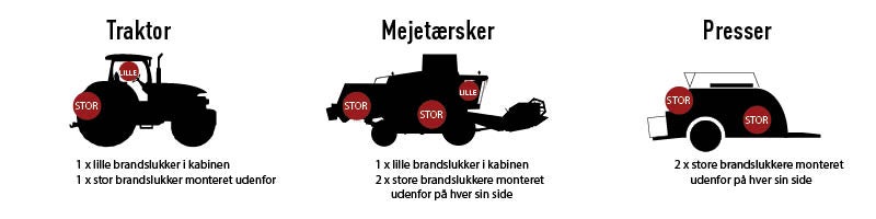 Vi anbefaler at du som minimum har følgende antal brandslukkere på dine maskiner