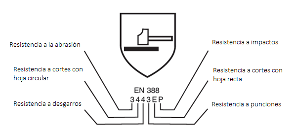 La norma EN-388:2016 garantiza la seguridad y la calidad de los productos y servicios. Los guantes de trabajo deben cumplir esta norma y se someten a pruebas de resistencia a la abrasión, a los cortes (2x), a los desgarros, a los pinchazos y a los impactos, lo que le permite juzgar de qué riesgo le protegerán los guantes, y en qué medida.