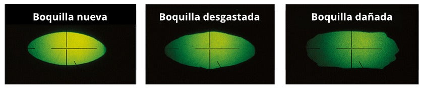 Aunque es posible que el desgaste no se detecte al inspeccionar visualmente una boquilla, sí puede apreciarse cuando se observa a través de un comparador óptico.Mantenimiento periódico
