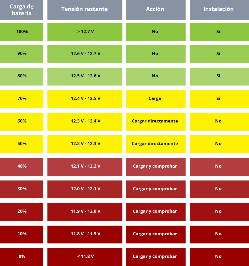 A tabela seguinte indica-lhe o que fazer com as suas baterias em função do seu nível de carga.