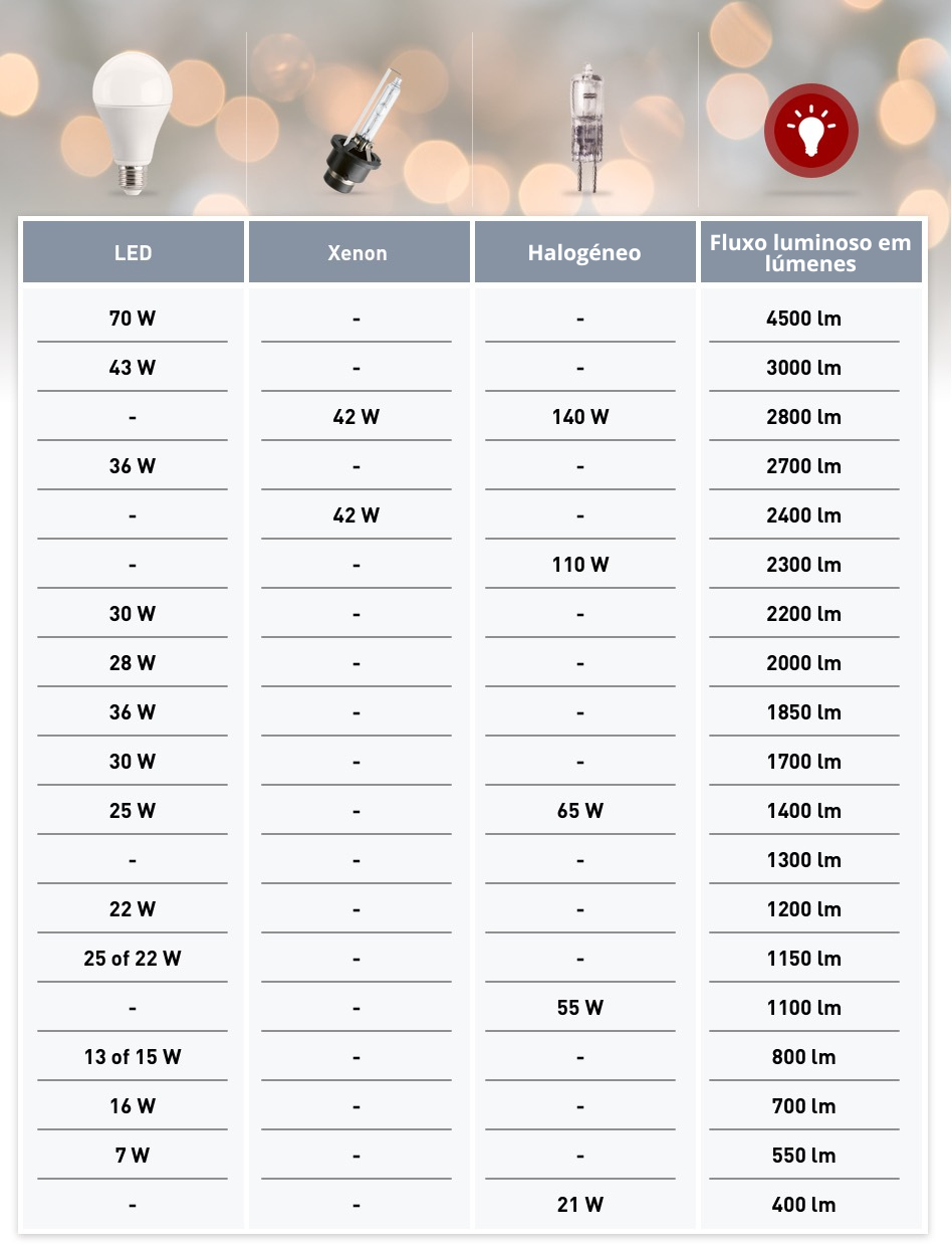 - Precisa de um feixe na proximidade imediata do veículo, mas também a uma distância maior? A melhor opção é entre 1850 a 4500 lúmenes.