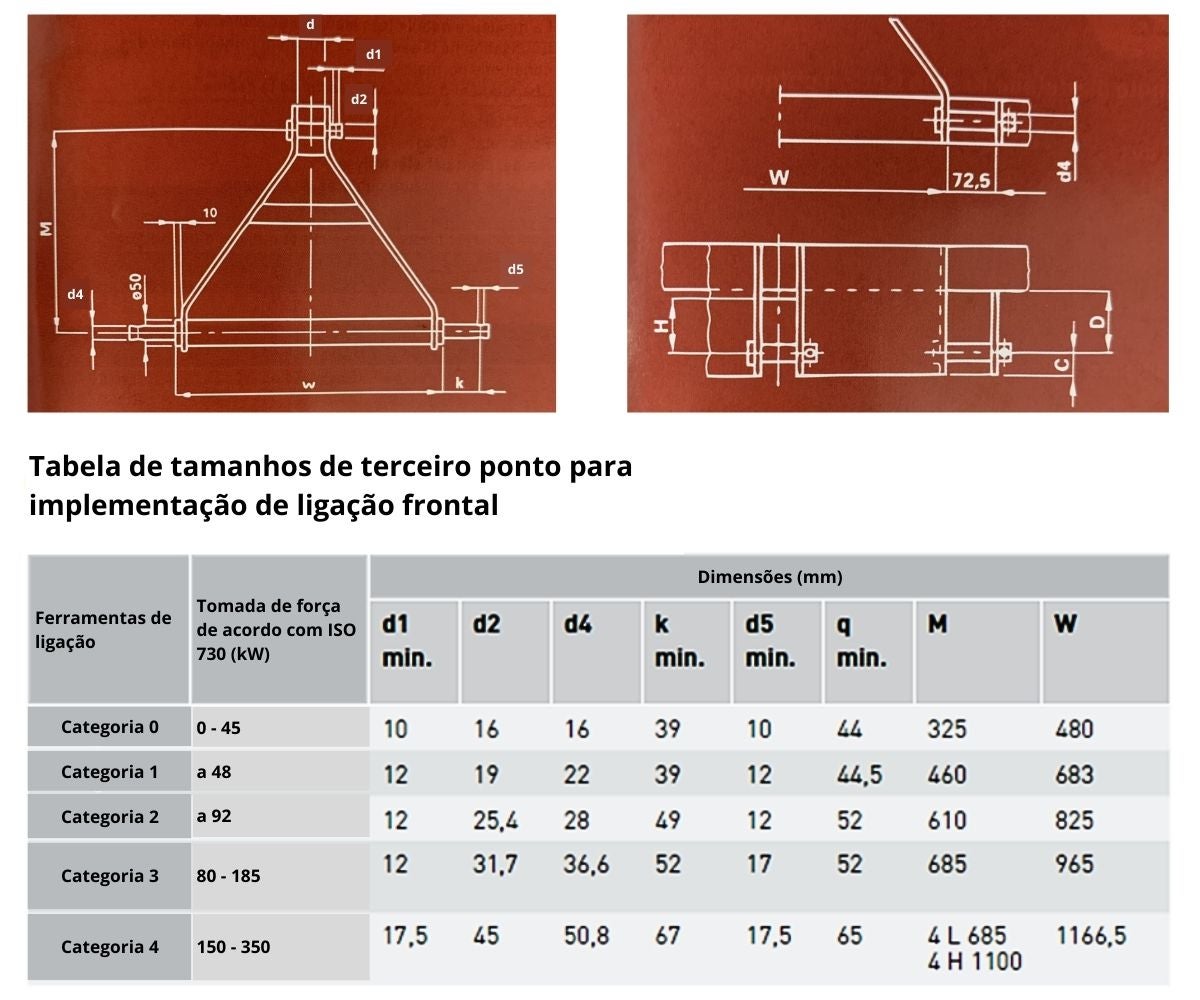 Para as ligações de alfaias de três pontos, existem cinco categorias associadas à potência do trator. Uma categoria superior possui braços de elevação mais pesados, barras superiores e pinos mais grossos. Porquê? Simplesmente porque lhes é aplicada mais potência.