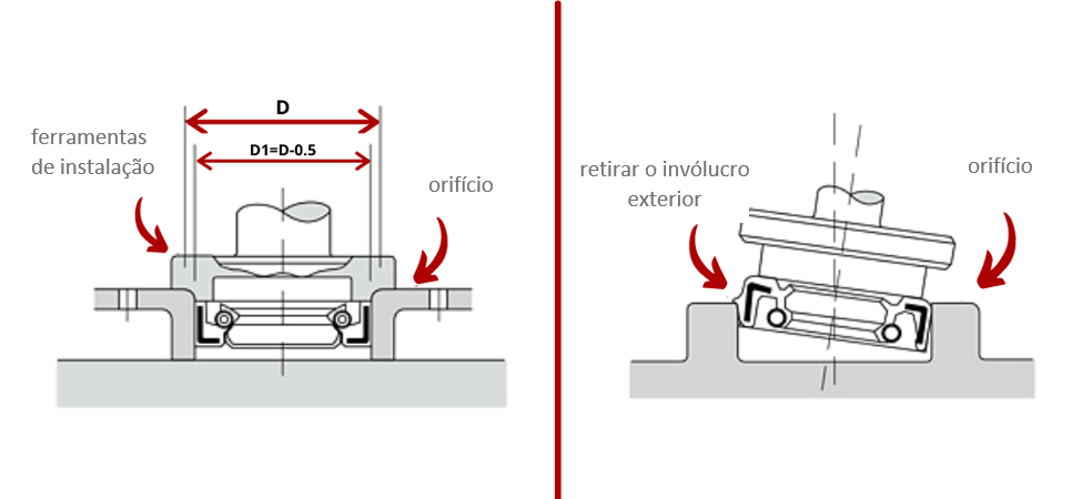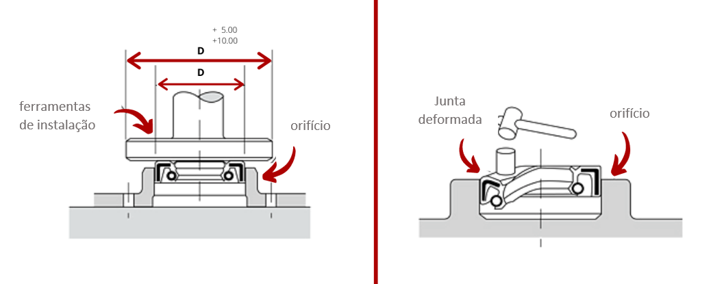 Motivo: O diâmetro interior é maior do que o diâmetro exterior da junta de óleo.