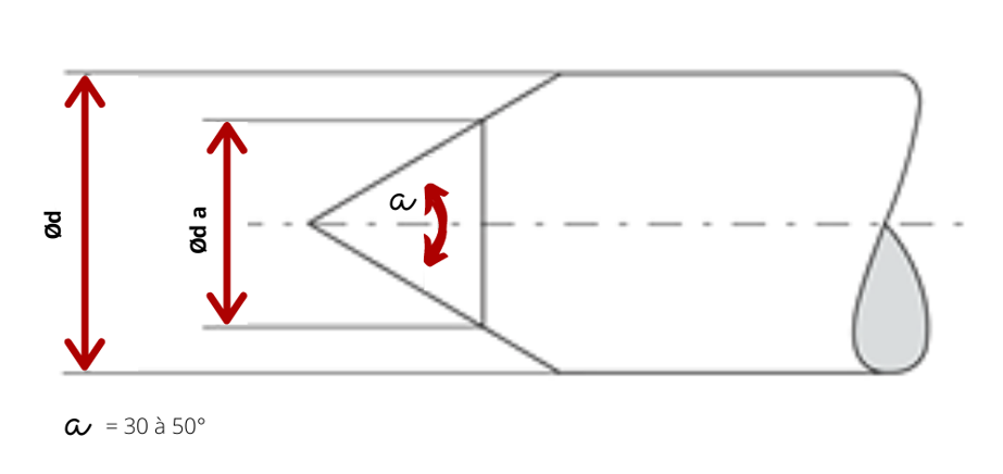 O mais importante? Manter os cilindros, o orifício e o eixo limpos. A sujidade entre o lábio de vedação e o eixo causará uma fuga. Além disso, o diâmetro interno da junta de óleo deve ser esticado durante a montagem. Aqui é importante que o eixo tenha um ângulo de 30° a 50°. O orifício deve também ter um chanfro mínimo de 30° no lado de subida. Pode observá-lo na presente ilustração: