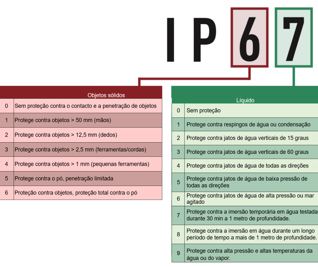 Ao adquirir uma nova luz LED, além de considerar a funcionalidade, portabilidade, cor e imagem de luz, é sempre importante escolher o valor de IP correto. O valor de IP significa "Ingress Protection" (grau de proteção). É uma norma universal que indica o nível de proteção contra a penetração de objetos sólidos e líquidos em equipamentos elétricos.