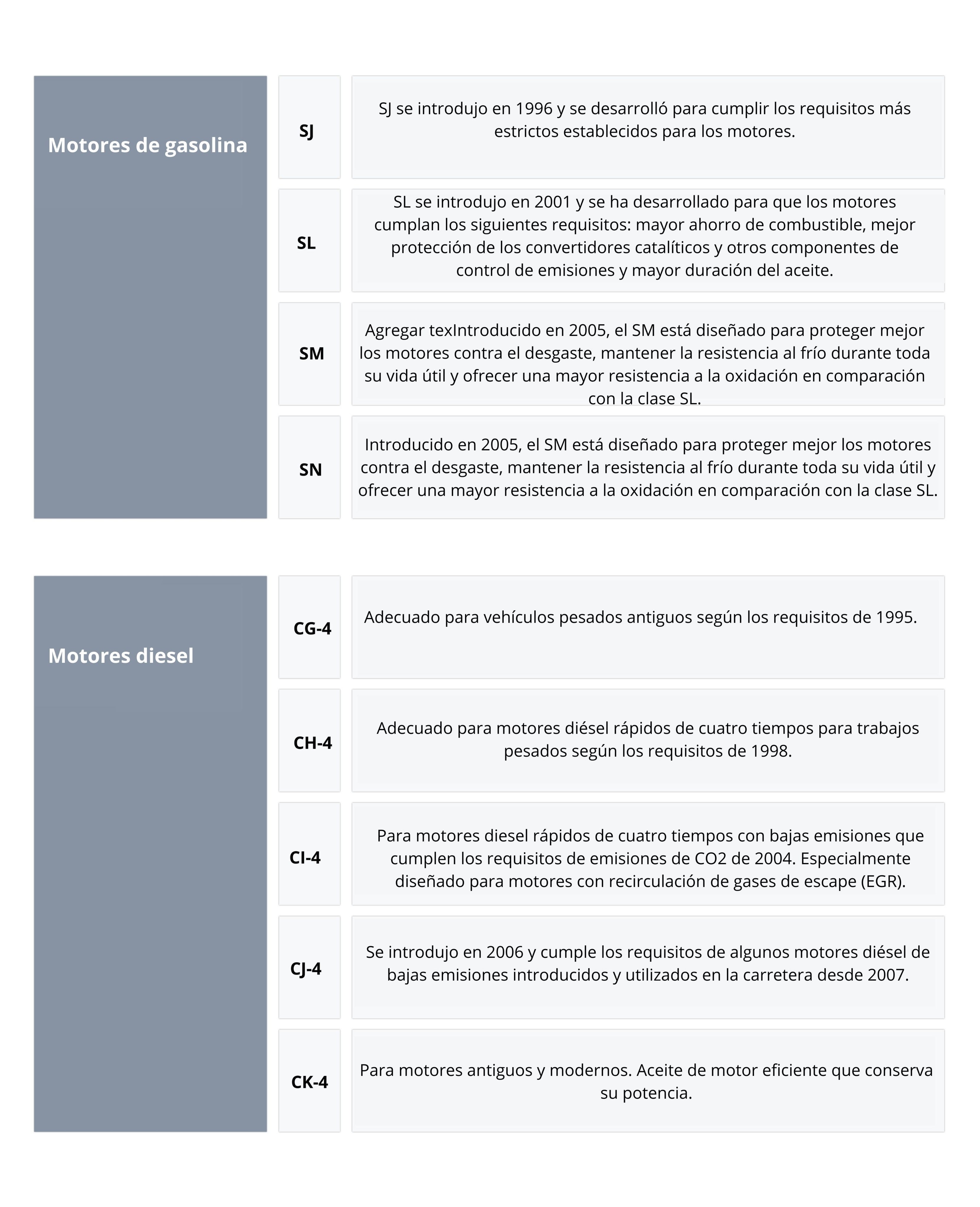 O API indica a qualidade e adequação do óleo e é representado por duas letras. A primeira letra pode ser ou 'S' ou 'C':