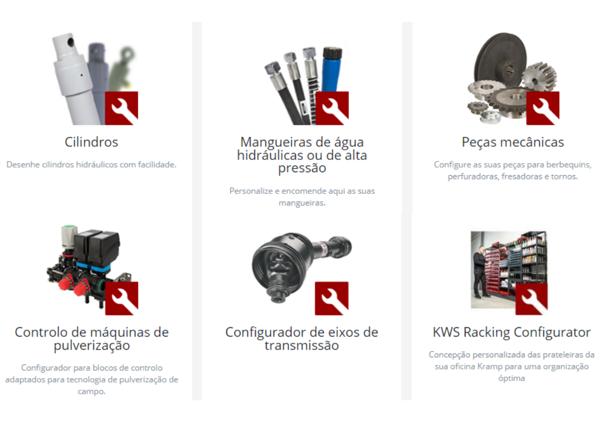 O configurador de produtos Kramp é uma ferramenta online que o ajuda a encomendar produtos personalizados. Em alguns passos simples, pode transformar um produto standard num produto feito à sua medida.