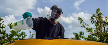 No escuro da noite, a luz azul proporciona uma visão óptima das gotas para assegurar uma distribuição perfeita e evitar a deriva.