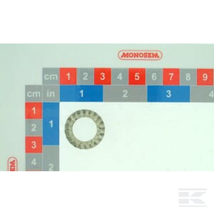 | Descrição | Anilha de bloqueio serrilhada plana com dentes exteriores, em aço para molas, DIN 6798 em A. As anilhas de pressão serrilhadas são usadas principalmente para fazer contacto elétrico com peças com revestimento superficial (pintura, camada resistente à corrosão, etc.), os dentes penetram através da camada isolante. | |