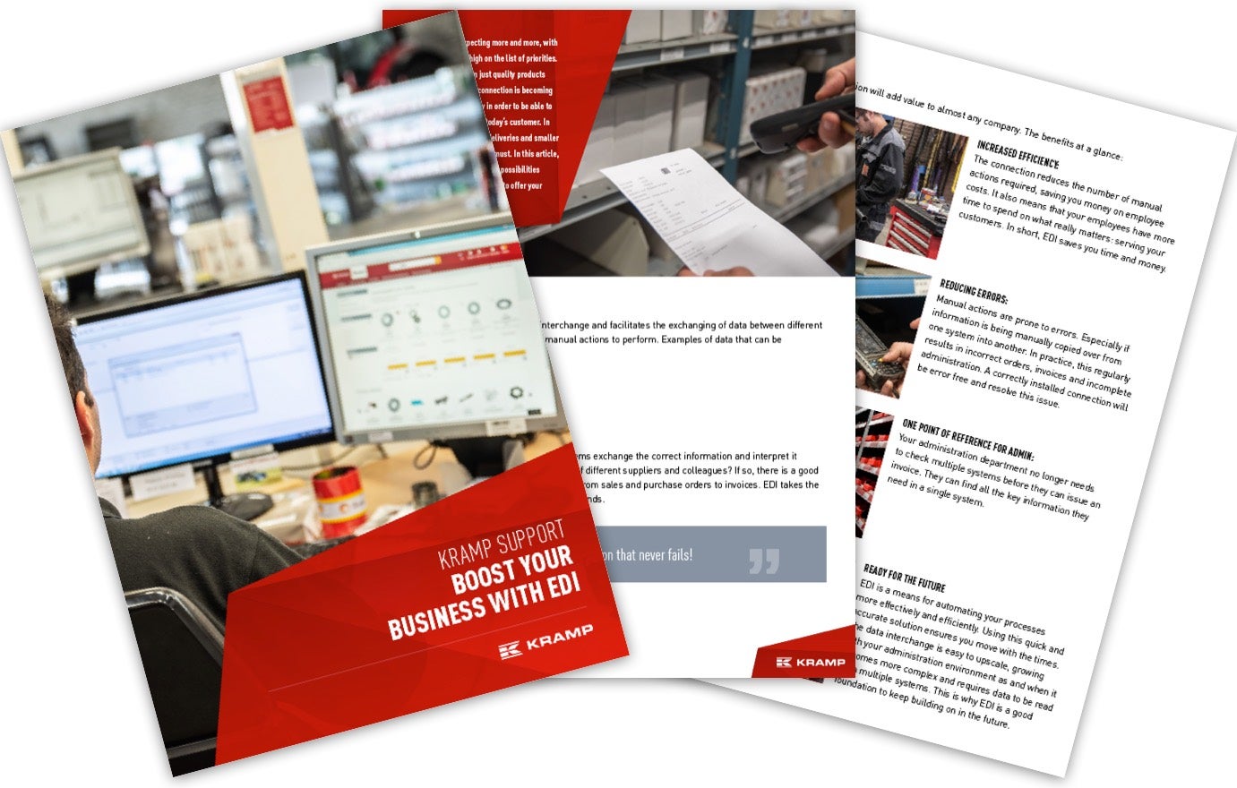 An EDI connection is becoming increasingly necessary in order to be able to satisfy the demands of today‘s customer. Download the PDF 'Kramp Helps: Boost your business with EDI' and read more about EDI connections.