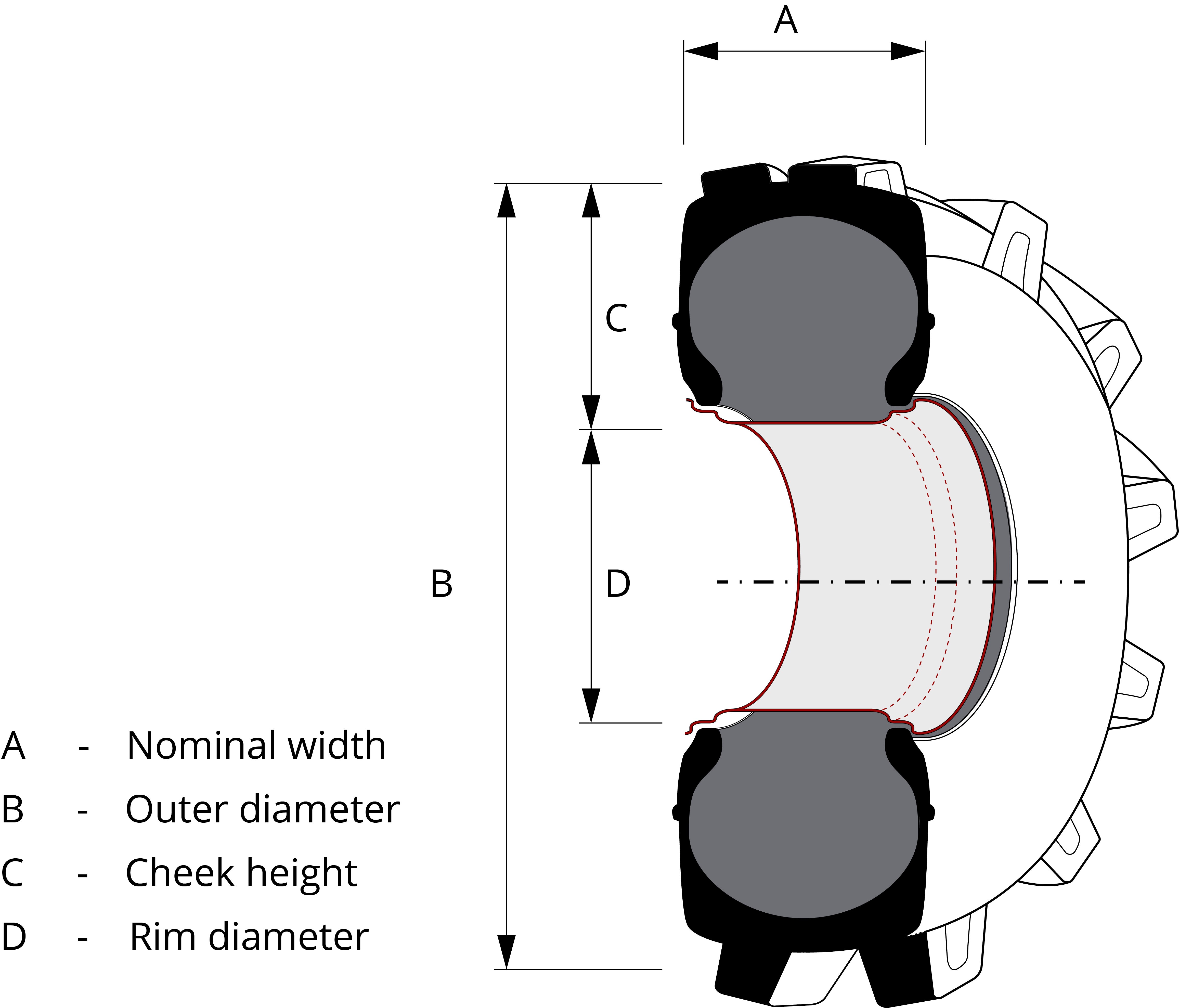 In addition, the roundness of the shoulder is important. It can be rounder or more square. A rounder shoulder ensures less rutting compared to an angled shoulder. For example, the tyres of a lawnmower need a rounder shoulder to prevent rutting. But a tractor that has to go into the field to bring in the harvest needs a hooked shoulder to get grip. The tyre bead should always fit snugly on the rim. Especially with tubeless tyres, this is very important.