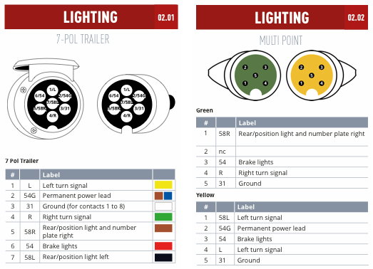 Connecting the lighting on your trailers can be difficult. These four connection diagrams are intended to make things clearer.