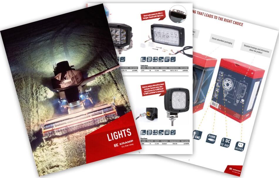 Are you looking for more information about work lights and the variety of lamps available? Download the 'Kramp vehicle lighting' guide and learn more about the vehicle lighting available at Kramp.