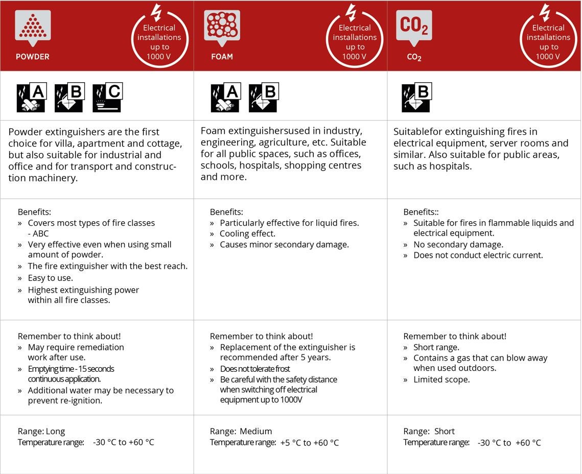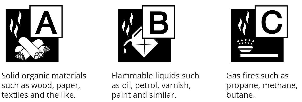 All extinguishers are approved for one or more fire classes according to the extinguisher's application. The fire class indicates the type of fires you can extinguish. Please pay attention.