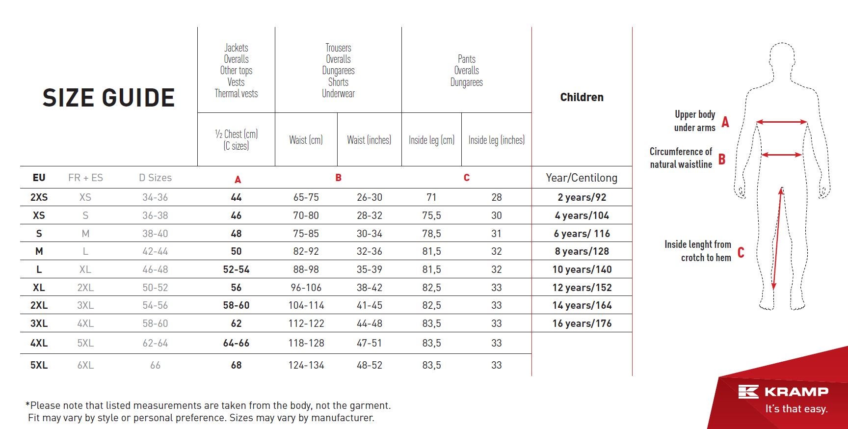 After measuring, you can easily find the right size for your customers in our size chart for Kramp Clothing.