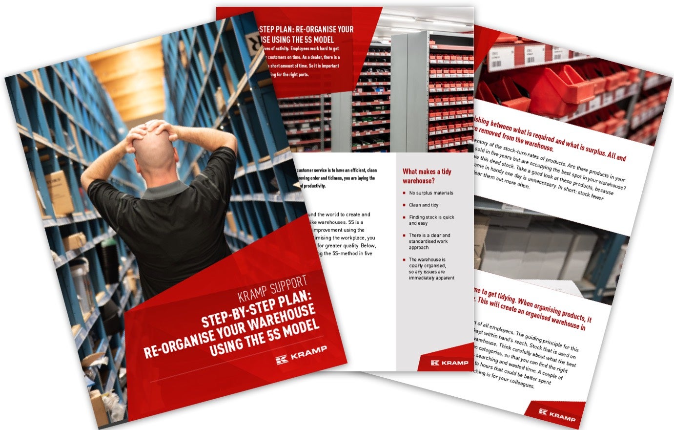Curious to find out how Kramp can help you implement the 5S method? We not only use the 5S method ourselves, but also have vast experience in implementing 5S for our customers. Enquire with your account manager or relationship manager about the options for implementing 5S within your organisation at no cost.