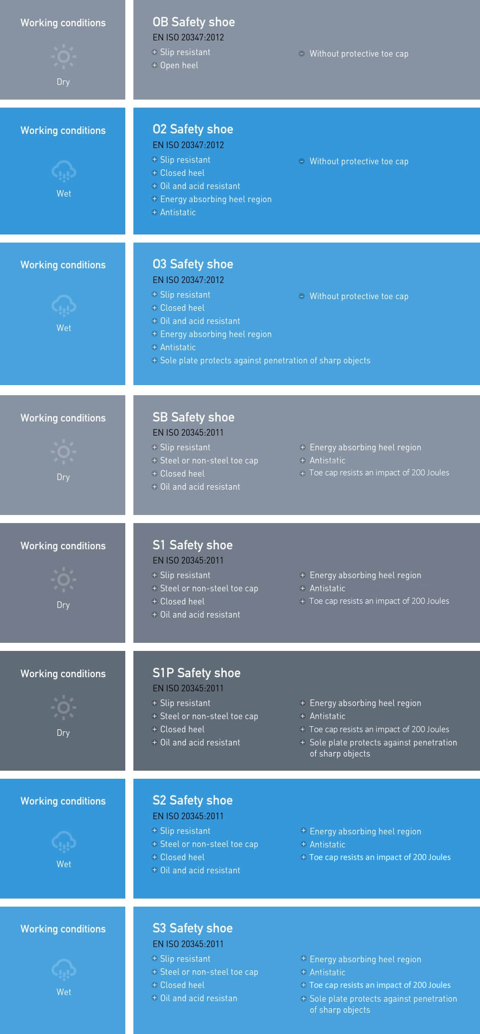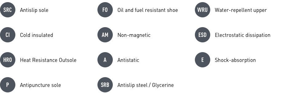 With the additional standards you can tailor your safety shoes perfectly to your working environment.