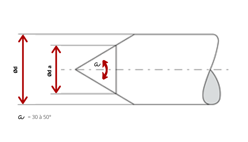 The most important thing? Keep the cylinders, bore and shaft clean. Dirt between the sealing lip and shaft will cause a leak. In addition, the inner diameter of the oil seal must be stretched during assembly. Here it is important that the shaft has a run-up edge at an angle of 30° to 50°. The bore must also have a minimum chamfer of 30° on the run-up side. You can see that in this illustration: