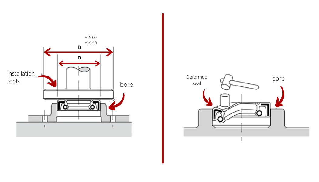 Do not use excessive force when inserting the oil seal into the bore. Use a suitable installation tool and carefully press the oil seal into the bore.