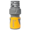 | Long description | Hose End Connectors with Click & Connect Technology are designed to fit most male end connectors. They feature a comfortable grip, thanks to Twin Soft Touch Pads, even when wet. The ultra-tough engineering thermoplastic bridges the gap between plastic and metal, providing strength and resistance for everyday use. The hose is securely connected due to barbs that grip both the inside and outside of the hose. An ingenious flexible hose-tail on the nut eliminates hose kinking, swelling, and leaking at the connection point with the fitting, ensuring a secure, leak-free connection every time. | |