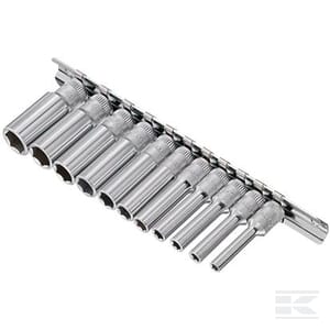 | Extra info | Set nasadnih ključeva 3/8" s čeličnim držačem za montažu na zid. Ovaj set od 10 metričkih šesterokutnih nasadnih ključeva sadrži ključeve veličina 3 mm, 4 mm, 5 mm, 6 mm, 7 mm, 8 mm, 9 mm, 10 mm, 11 mm i 12 mm. Izrađeni su od brzoreznog alatnog čelika. |