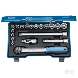 | Extra info | Reverzibilna račna 1/2" br. 1993 U-20 - Nasadni ključ 1/2" 12-strani UD profil br. D 19: 8, 9, 10, 11, 12, 13, 14, 15, 16, 17, 18, 19, 21, 22, 24, 27, 30, 32 - Klizna ručka 1/2" br. 1987 - Produžetak 1/2" br. 1990-5 -10 - Univerzalni zglob 1/2" br. 1995 | |