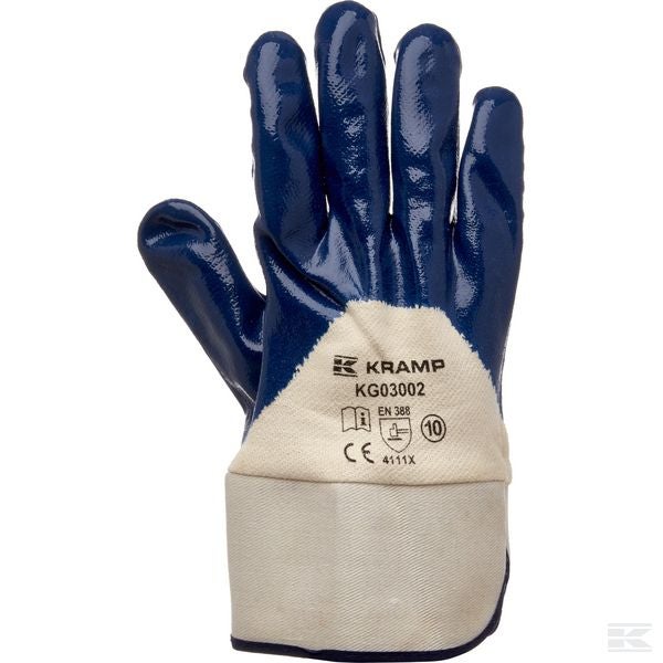 Materiale: Nitrile blu, rivestimento su 3/4 del guanto, polsino rivestito di gomma, fodera in cotone