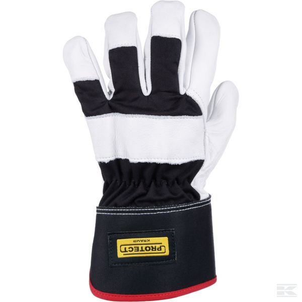 • Guanti per l’assemblaggio in pelle realizzati in pelle bovina fiore sul palmo e sopra l’intero polsino.