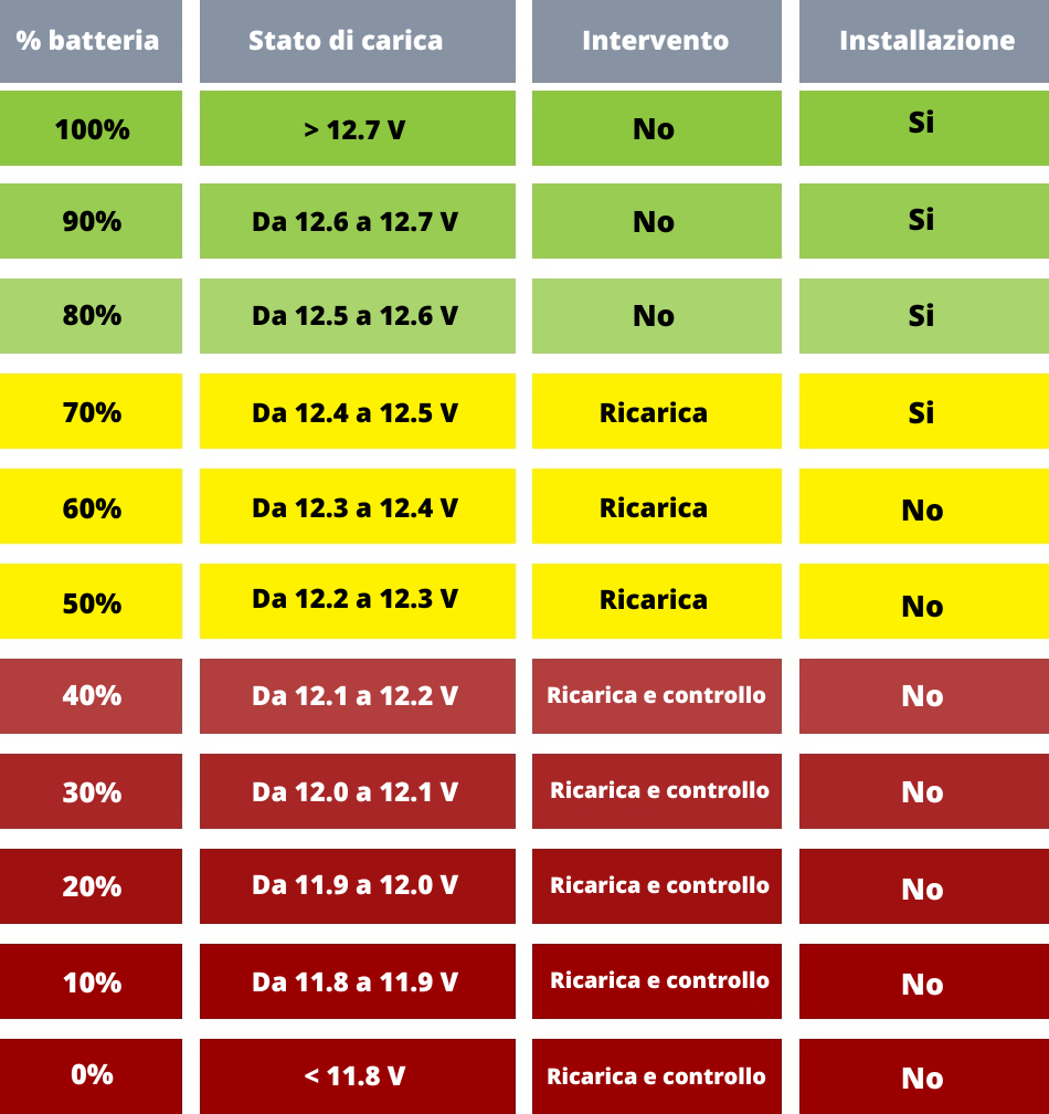 Per il rimessaggio invernale, è importante caricare prima la batteria correttamente e poi conservare il veicolo o la batteria stessa in un luogo fresco e asciutto. Assicurarsi poi che la batteria sia conservata al riparo dal gelo. A tal proposito, è necessario infatti mantenere costantemente la batteria carica perchè, se scarica, questa potrebbe congelarsi o solfatarsi.