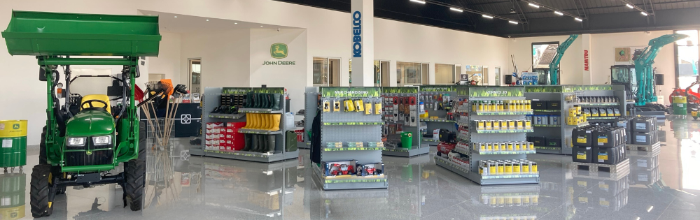 Il nuovo shop si sviluppa al centro di un moderno showroom di oltre 900 mq, occupando un'area totale di circa 170 mq. L'allestimento comprende 54 metri lineari di scaffalatura in cui sono presenti 20 diverse categorie di prodotti a marchio Kramp e articoli firmati John Deere, offrendo una gamma completa e di qualità per rispondere alle esigenze dei clienti del settore.