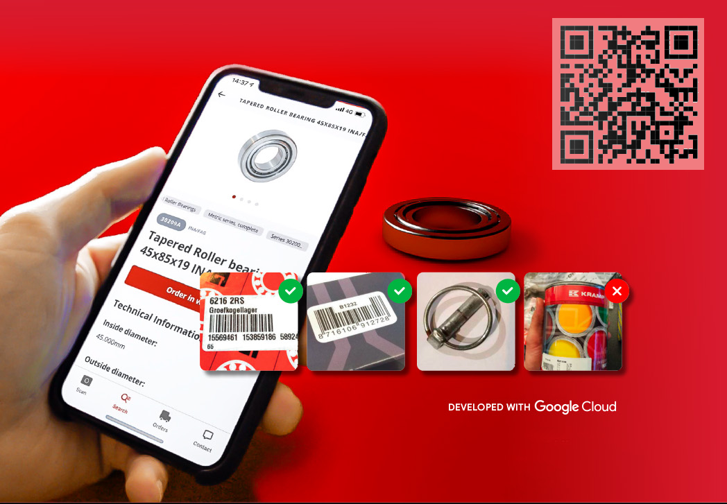 Als Kramp Online Service-klant beschikt u over meer functies. Bovenop het scannen en herkennen, kunt u eveneens de beschikbaarheid van producten controleren, prijzen opvragen, artikelen toevoegen aan uw winkelwagentje én klikken op bestellen. It's that easy!