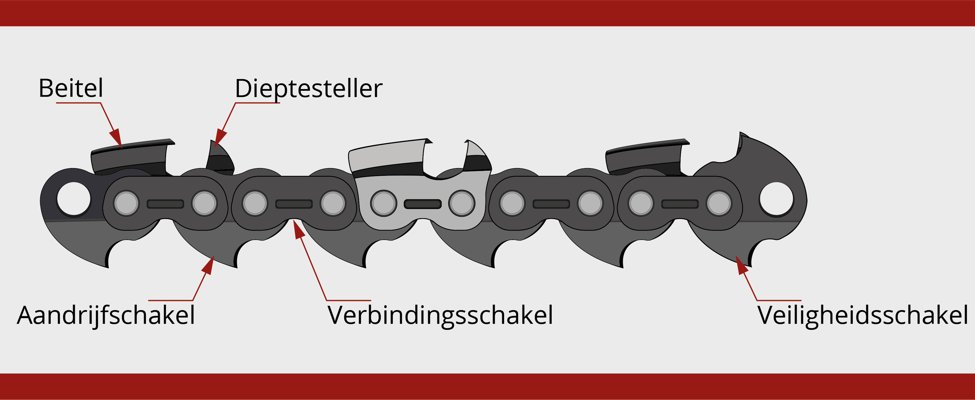 Zaagketting en -blad moeten regelmatig worden vervangen om ongelukken te voorkomen en een constante kwaliteit te waarborgen. De keuze van kettingzaag en ketting hangt af van de eigen voorkeur en het gebruiksdoel. Een ketting met haakse beitel is vooral geschikt voor professioneel gebruik. Gebruik voor universeel gebruik het beste een ketting met half-haakse beitel. De keuze van de veiligheidskettingen moet worden gemaakt op basis van de toepassing en je eigen vaardigheden. Om een lange en productieve levensduur van de ketting te garanderen is het in ieder geval belangrijk dat deze regelmatig geslepen en geolied wordt.